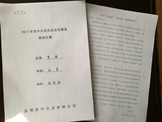 魯中水泥積極落實(shí)企業(yè)文化建設(shè) 設(shè)立“光榮榜”“曝光臺”