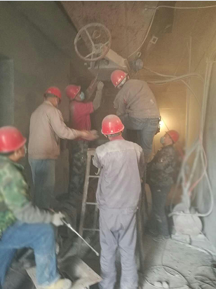本次技改工作時間緊、任務重,動力車間梁學文主任接到任務后,不等不靠,立即組織人員分兩組同時進行設備改造。拆卸皮帶秤、焊裝下料口、吊裝絞刀、順接線路,在梁主任的帶領下,動力車間的員工分工明確、組織有序,僅用一天半的時間順利完成了8根絞刀的更換安裝工作,并在16日下午進行了調(diào)試標稱,確保了φ3.8m磨的順利開機運行。