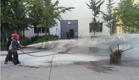 本次演練分為消防知識(shí)講解和現(xiàn)場(chǎng)實(shí)戰(zhàn)滅火兩部分。許亮副廠長(zhǎng)首先講解了消防安全知識(shí),并對(duì)滅火器材的使用方法做了現(xiàn)場(chǎng)示范。隨后,在許廠的指揮下,演練小組按照預(yù)定的演練方案,分別采用干法滅火器與消防水槍進(jìn)行消防演練。參加演練人員面對(duì)火情,迅速行動(dòng)、默契配合,手持滅火器、消防水槍將大火及時(shí)撲滅,成功圓滿完成了消防演練活動(dòng)。