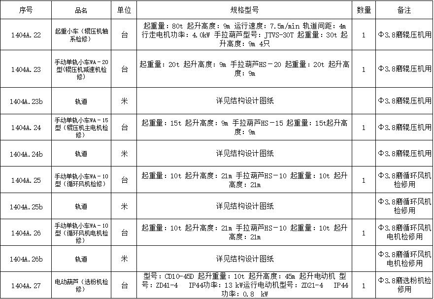 根據(jù)公司《采購招標(biāo)管理制度》,淄博魯中水泥有限公司定于3月21日—28日對φ3.8m、φ4.2m水泥磨輥壓機配套起重設(shè)備進(jìn)行公開招標(biāo),具體項目如下: