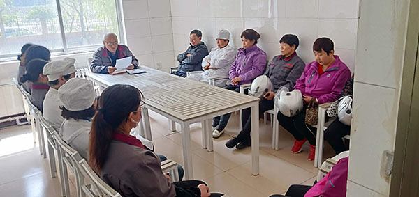 王宏和王士峰針對(duì)食堂、宿舍和浴室的環(huán)境改造提升以及安保巡邏、修剪綠化做了具體的安排。