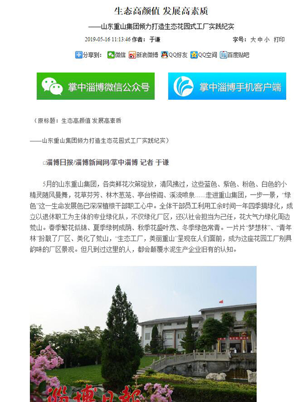 生態(tài)高顏值 發(fā)展高素質(zhì) —淄博新聞媒體刊發(fā)重山集團打造生態(tài)花園式工廠實踐紀實