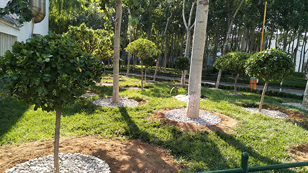 隨著高溫酷暑季節(jié)到來,為保持綠化區(qū)樹穴澆灌水不流失,6月23日,物資部經(jīng)理張娟聯(lián)系供料車間運(yùn)來石子和土,物資部眾姐妹紛紛拿起工具,頂著烈日行動(dòng)起來,大家分工合作,卸車、運(yùn)輸,為每個(gè)樹穴填土、鋪石子,歷經(jīng)一天的時(shí)間,為綠化帶的樹木穿上了一層美麗的嫁衣。