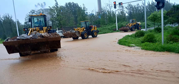 受臺(tái)風(fēng)“利奇馬”的影響,自8月10日的持續(xù)降雨造成公司部分路段積水嚴(yán)重。尤其是職工生活區(qū)與102省道交界處積水成湖,這個(gè)路段是生活區(qū)職工上下班的必經(jīng)之道,也是變電站電纜溝所在地,大量積水加帶湍急的水流對(duì)上下班職工造成嚴(yán)重影響,也威脅著變電站的安全運(yùn)行。11日早晨,集團(tuán)公司總經(jīng)理王魯淄得知這一消息立刻趕往現(xiàn)場(chǎng)部署工作。熱電廠韓紀(jì)永、張斌、趙剛、魯中水泥王樹俊,集團(tuán)總務(wù)處王宏、王立群、陳萬(wàn)鵬等現(xiàn)場(chǎng)成立防汛抗洪小組。一邊對(duì)現(xiàn)場(chǎng)進(jìn)行警戒,組織員工挖渠排水、擺放沙袋。另一邊協(xié)調(diào)供料車間、熱電廠4臺(tái)鏟車支援。4臺(tái)鏟車馬不停蹄從料場(chǎng)運(yùn)石頭到現(xiàn)場(chǎng)筑堤,經(jīng)過(guò)近6小時(shí)的緊張工作,近百余袋沙袋和40噸石頭在電纜溝筑起一道安全防護(hù)堤,及時(shí)阻止了山洪對(duì)電纜溝的沖擊,保證了員工的人身安全和公司正常生產(chǎn)。