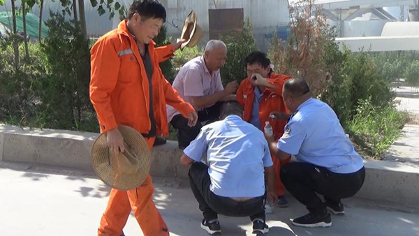 快!王世恩中暑了,趕緊打電話給班長”,一起工作的李長全向同事喊道。這是8月23日上午,集團(tuán)總務(wù)處開展中暑應(yīng)急演練中的一幕。 此次演練按計(jì)劃:總務(wù)處一名道路養(yǎng)護(hù)工在熟料大棚工作時(shí)中暑暈倒,同事員工立即報(bào)告班長和部門領(lǐng)導(dǎo)??倓?wù)處主任王宏接到電話后立即帶領(lǐng)相關(guān)人員奔赴現(xiàn)場。首先用冷毛巾濕敷中暑員工頭頂,并迅速把中暑職工抬到就近陰涼處,用清涼通氣的藥品通入中暑員工的鼻孔,最后讓其服下解暑藥品。根據(jù)員工的中暑程度讓其充分休息,嚴(yán)重中暑者計(jì)劃及時(shí)送醫(yī)救治。演練結(jié)束后,王宏對演練中的不足進(jìn)行了總結(jié),并提出了解決方案。通過此次演練。使干部職工認(rèn)識到了防暑降溫措施的重要性,增強(qiáng)了員工在高溫作業(yè)下的保護(hù)意識,同時(shí)也提高了集團(tuán)總務(wù)處安保大隊(duì)的應(yīng)急能力。