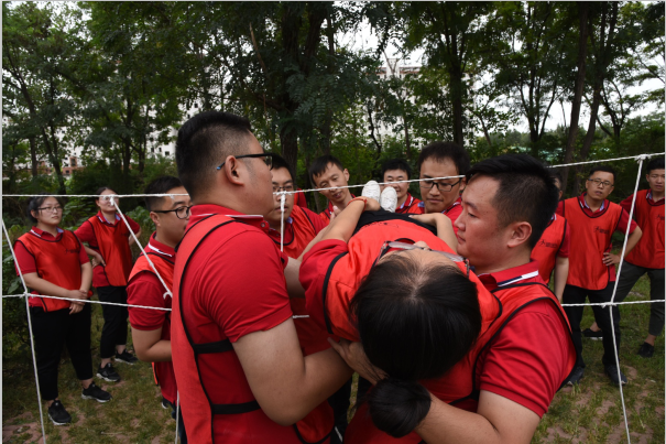 在教練的指導(dǎo)下,兩個(gè)團(tuán)隊(duì)分頭行動(dòng),分別參加了高空抓杠、孤島求生、穿越電網(wǎng)等項(xiàng)目,最后兩支隊(duì)伍“合二為一”,共同體驗(yàn)了“七巧板”項(xiàng)目。挑戰(zhàn)高空抓杠時(shí),每位學(xué)員都戰(zhàn)勝了自身恐懼,大膽向前,躍出“不可能”的一跳;挑戰(zhàn)生死電網(wǎng)時(shí),所有學(xué)員通過(guò)相互配合,打破了相互之間的生疏感,增進(jìn)了情感交流,共同分享了戰(zhàn)勝困難的喜悅;“孤島”項(xiàng)目讓大家認(rèn)識(shí)到工作的高效性得益于溝通障礙的打破,使學(xué)員們意識(shí)到合理的分工可以提高工作效率,鍛煉了學(xué)員的分析能力,增強(qiáng)學(xué)員們的工作時(shí)效性;“七巧板”項(xiàng)目告訴我們,信任與合作是完成看似不可能完成的任務(wù)法寶,鑄就團(tuán)隊(duì)的力量才是王道。