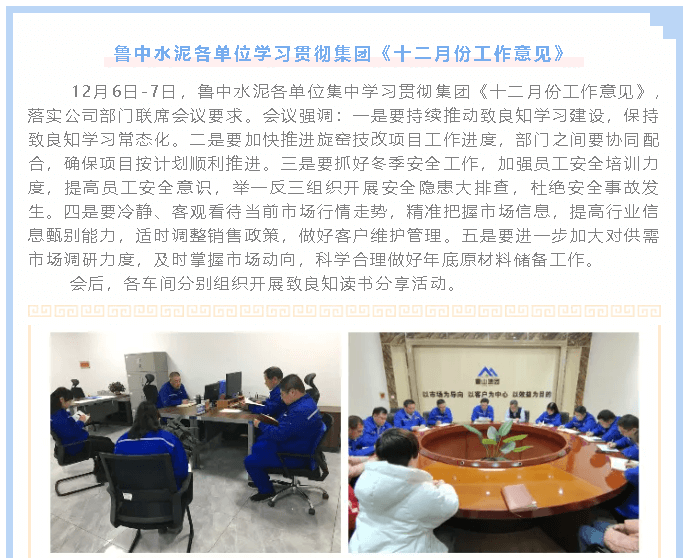 魯中水泥各單位學(xué)習(xí)貫徹集團(tuán)《十二月份工作意見(jiàn)》