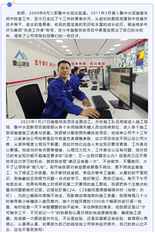 【重山人?重山事】在磨煉中收獲成長——記魯中水泥中控員張碩