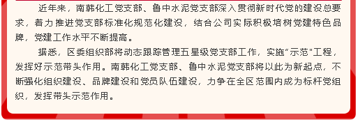 【黨建】南韓化工、魯中水泥黨支部榮獲“淄川區(qū)2021年度五星級(jí)黨支部”稱號(hào)