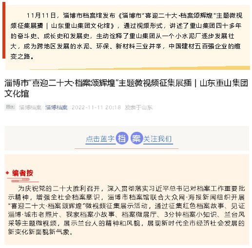 淄博市“喜迎二十大·檔案頌輝煌”主題微視頻征集展播 | 山東重山集團(tuán)文化館