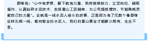 【重山人?重山事】“水泥人”用實(shí)踐詮釋工匠精神---記魯蒙水泥粉磨車間主任晏鋒