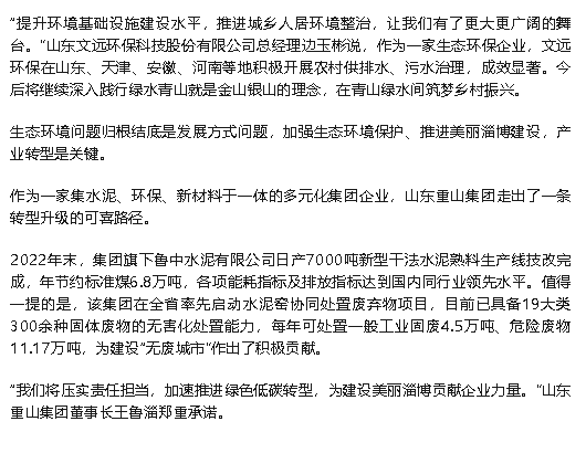 《淄博日報》報道重山集團綠色發(fā)展成果