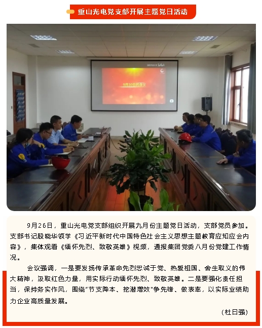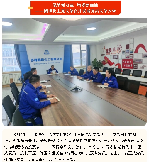 【黨建】鵬峰化工黨支部召開發(fā)展黨員支部大會、黃驊三陽黨支部開展志愿服務(wù)活動、重山光電黨支部開展主題黨日活動