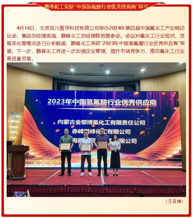 【榮譽(yù)】鵬峰化工榮獲“中國(guó)氫氟酸行業(yè)優(yōu)秀供應(yīng)商”稱號(hào)、黃驊三陽榮獲河北硅酸鹽學(xué)會(huì)“優(yōu)秀會(huì)員單位”稱號(hào)