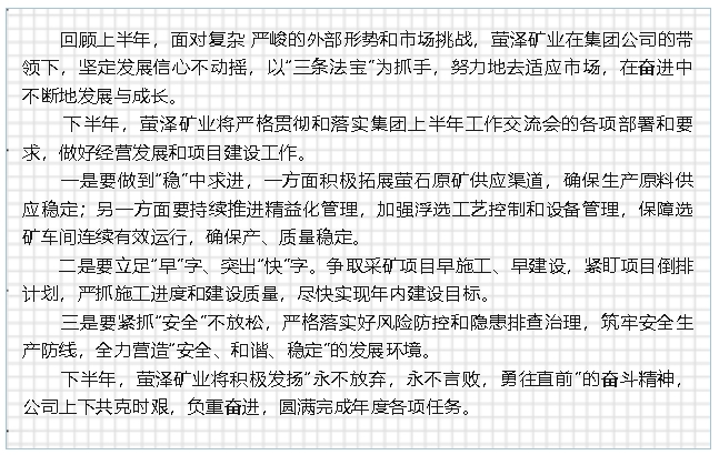 【貫徹落實(shí)年中會(huì)議精神】下半年怎么干——螢澤礦業(yè)