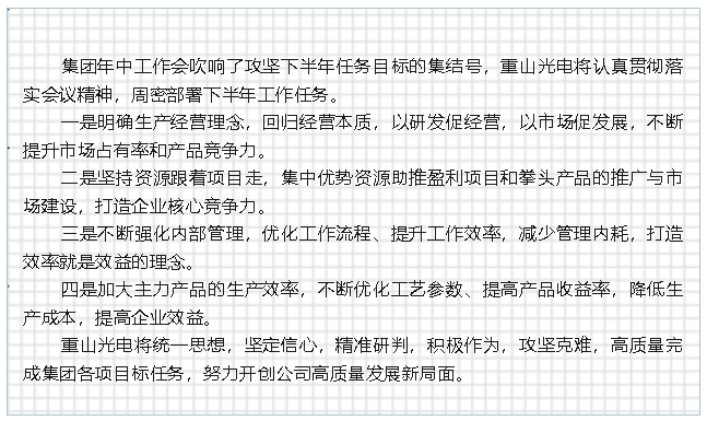 【貫徹落實(shí)年中會(huì)議精神】下半年怎么干——重山光電