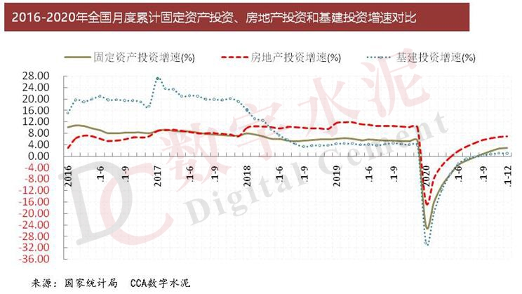 年初以來(lái),面對(duì)新冠肺炎疫情的巨大沖擊和復(fù)雜的國(guó)內(nèi)外社會(huì)環(huán)境。為抑制經(jīng)濟(jì)下行,我國(guó)繼續(xù)加強(qiáng)宏觀政策逆周期調(diào)節(jié)力度,加快“六保”“六穩(wěn)”政策落地,落實(shí)各項(xiàng)重大改革舉措,充分發(fā)揮中國(guó)超大規(guī)模市場(chǎng)優(yōu)勢(shì)和內(nèi)需潛力,構(gòu)建國(guó)內(nèi)循環(huán)為主、國(guó)內(nèi)國(guó)際雙循環(huán)相互促進(jìn)的新發(fā)展格局,多措并舉鞏固經(jīng)濟(jì)復(fù)蘇向好態(tài)勢(shì)。積極的財(cái)政政策和穩(wěn)健的貨幣政策持續(xù)顯效發(fā)力,克服了疫情和汛情的不利影響,分階段、有節(jié)奏、有針對(duì)性地推出一系列政策舉措,經(jīng)濟(jì)快速回暖。尤其是水泥相關(guān)的固定資產(chǎn)投資、房地產(chǎn)投資、基建投資指標(biāo)快速回升明顯,使得2020年全年我國(guó)水泥需求總量未受影響,繼續(xù)保持在23~24億噸的高位平臺(tái)期。