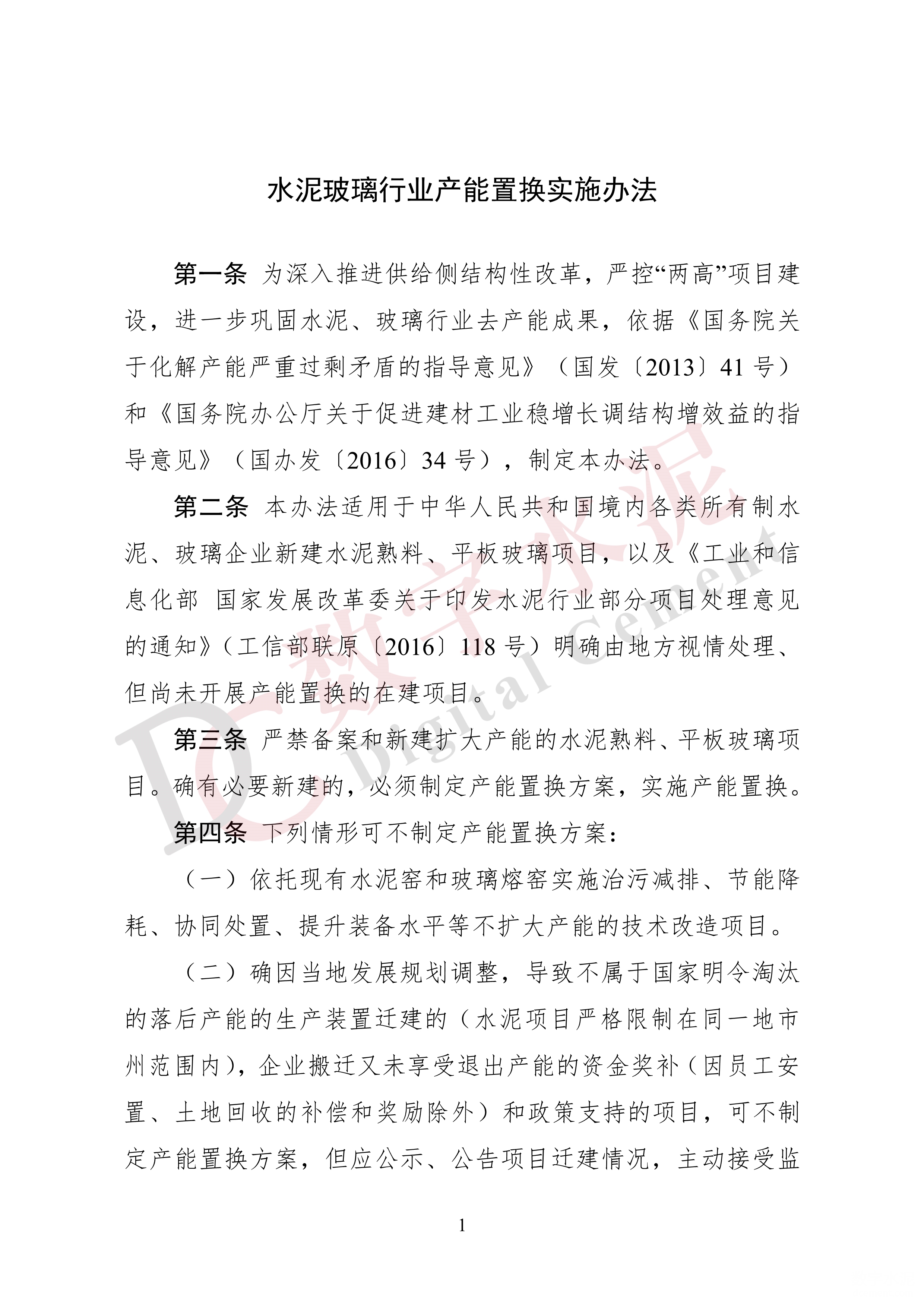 按照《辦法》要求,所有擴大產(chǎn)能的水泥熟料、平板玻璃項目,必須制定產(chǎn)能置換方案,實施產(chǎn)能置換?!豆I(yè)和信息化部 國家發(fā)展改革委關(guān)于印發(fā)水泥行業(yè)部分項目處理意見的通知》(工信部聯(lián)原〔2016〕118號)明確由地方視情處理、但尚未開展產(chǎn)能置換的在建項目,也需按照本辦法制定產(chǎn)能置換方案。
