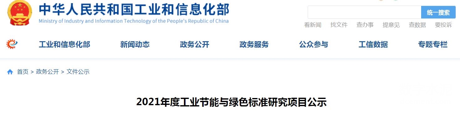 【轉(zhuǎn)載】多項(xiàng)水泥標(biāo)準(zhǔn)入選工信部2021年度工業(yè)節(jié)能與綠色標(biāo)準(zhǔn)研究項(xiàng)目名單