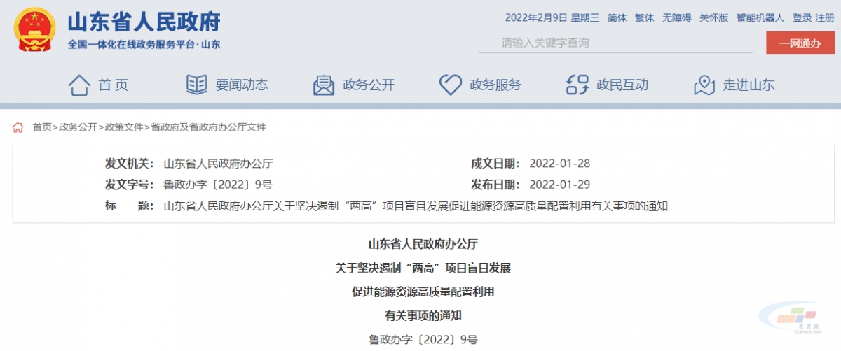 【轉(zhuǎn)載】山東?。簣詻Q遏制“兩高”項目盲目發(fā)展 水泥行業(yè)新上項目必須落實能源消費(fèi)減量替代