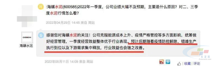海螺水泥表示,預(yù)計(jì)后期隨著疫情防控解除、錯(cuò)峰生產(chǎn)執(zhí)行到位以及下游需求集中釋放,行業(yè)效益也會(huì)隨之改善。