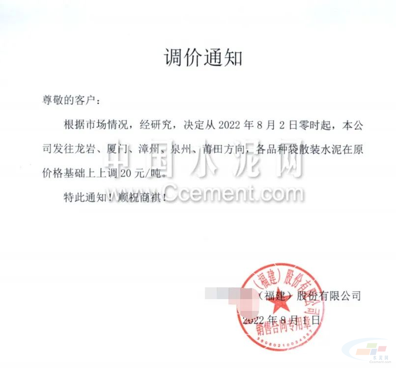 受停窯帶動(dòng),加之企業(yè)調(diào)價(jià)意愿強(qiáng)烈,8月2日起省內(nèi)一些主要廠家開(kāi)始嘗試通知上調(diào)水泥價(jià)格20元/噸左右。目前已有部分企業(yè)發(fā)布調(diào)漲通知,其余企業(yè)預(yù)計(jì)稍晚幾日跟進(jìn)。