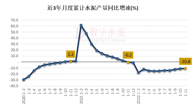 【轉(zhuǎn)載】需求持續(xù)減弱,1-11月份全國水泥產(chǎn)量同比降幅略有收窄