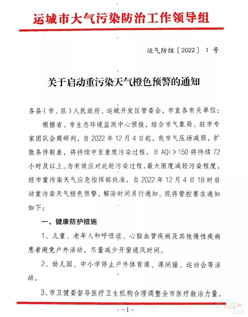 運(yùn)城:12月4日18時(shí)啟動(dòng)重污染天氣橙色預(yù)警