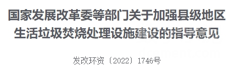 11月28日,國家發(fā)展改革委、住房和城鄉(xiāng)建設(shè)部、生態(tài)環(huán)境部、財政部、中國人民銀行五部門聯(lián)合印發(fā)了《國家發(fā)展改革委關(guān)于加強(qiáng)縣級地區(qū)生活垃圾焚燒處理設(shè)施建設(shè)的指導(dǎo)意見》。