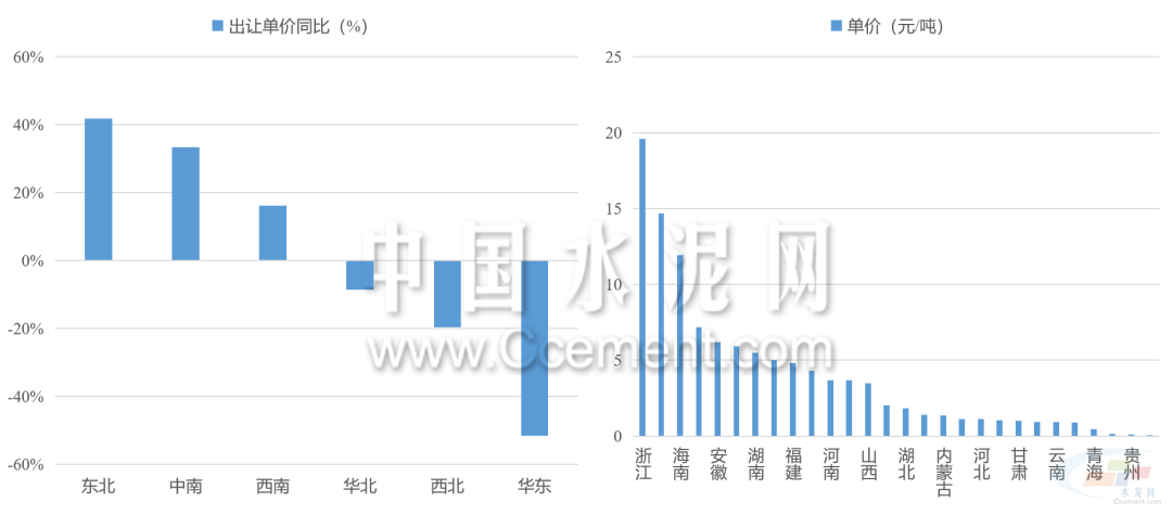 礦權(quán)單價(jià)整體下降。全國砂石礦權(quán)平均成交價(jià)格約4元/噸,同比下滑約20%,其中華東礦權(quán)交易單價(jià)下滑最為明顯。各省出讓的砂石礦單價(jià)差距有所縮小。浙江及遼寧是礦權(quán)單價(jià)最高和最低的省份。具體而言,浙江的交易單價(jià)由上半年的30元/噸以上降至20元/噸以下,進(jìn)一步拉低了華東地區(qū)整體的礦權(quán)交易單價(jià)。