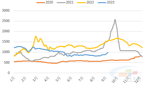 9月本該用煤淡季,然而煤價(jià)卻出現(xiàn)“淡季偏強(qiáng)”特征。究其原因,一方面煤炭產(chǎn)區(qū)事故頻發(fā),安檢力度加大,不少煤礦暫時(shí)停產(chǎn),導(dǎo)致供應(yīng)階段性偏緊;另一方面,國(guó)際原油價(jià)格持續(xù)上漲,帶動(dòng)國(guó)內(nèi)化工品利潤(rùn)修復(fù),化工行業(yè)開(kāi)工率提升,化工用煤采購(gòu)增加。多重因素交織下,9月煤炭?jī)r(jià)格震蕩上漲,目前煤價(jià)在990元/噸左右,較月初上漲145元/噸,漲幅高達(dá)17%,水泥企業(yè)生產(chǎn)成本壓力加大。部分企業(yè)反饋,即使當(dāng)前水泥價(jià)格上調(diào)20元/噸,也難以抵消煤價(jià)上漲帶來(lái)的成本增加壓力,本輪水泥價(jià)格上漲的主要驅(qū)動(dòng)力在于煤價(jià)上漲。