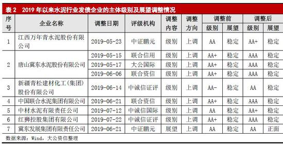 信用水平:2019年,水泥行業(yè)整體信用質(zhì)量較好;預計2020年,水泥行業(yè)整體信用水平將保持穩(wěn)定,但產(chǎn)能過剩相對嚴重的中小型水泥企業(yè)面臨被整合和淘汰的可能性較大,其償債能力存在不確定性。