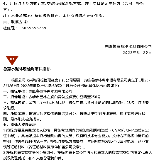 【招標(biāo)公告】魯中水泥電纜、魯蒙水泥煙煤、環(huán)境檢測(cè)項(xiàng)目招標(biāo)