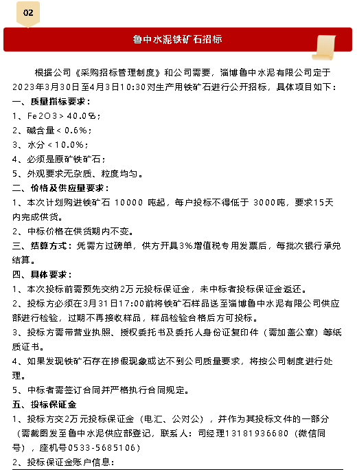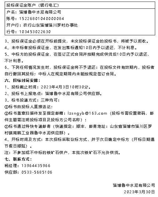 【招標(biāo)公告】魯中水泥超低排放評估監(jiān)測技術(shù)服務(wù)、鐵礦石招標(biāo)