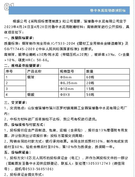 【招標(biāo)公告】魯中水泥