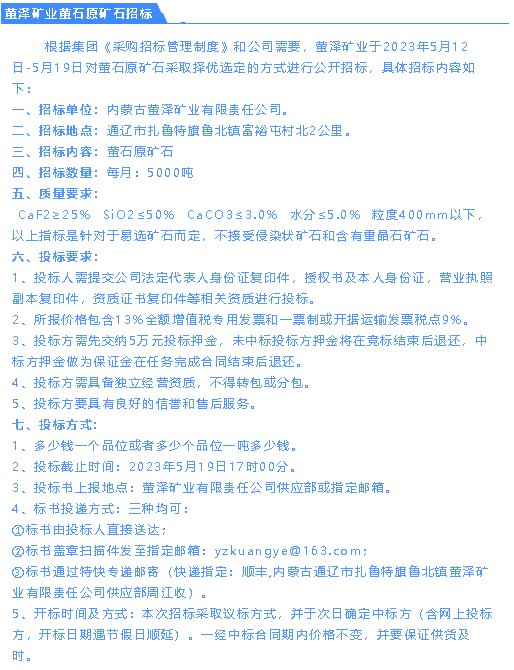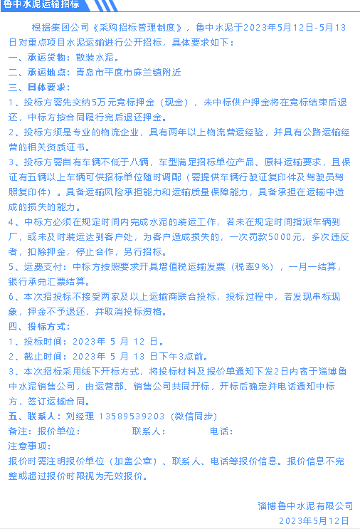 【招標(biāo)公告】魯中水泥、螢澤礦業(yè)
