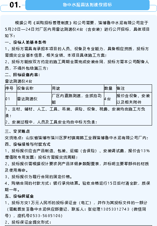 【招標公告】魯中水泥、鵬峰化工