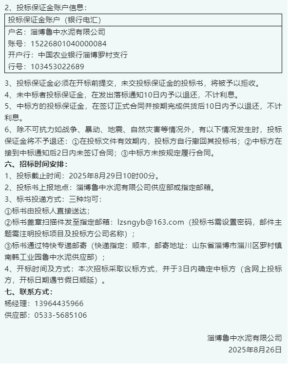 【招標(biāo)公告】魯中水泥