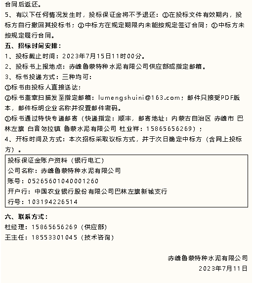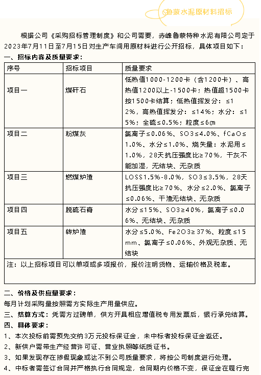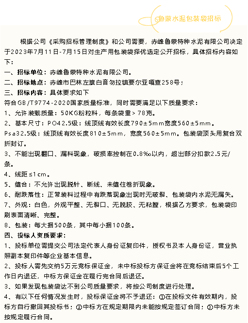 【招標(biāo)公告】魯蒙水泥包裝袋、原材料招標(biāo)