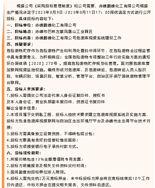 【招標公告】鵬峰化工