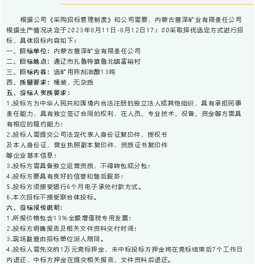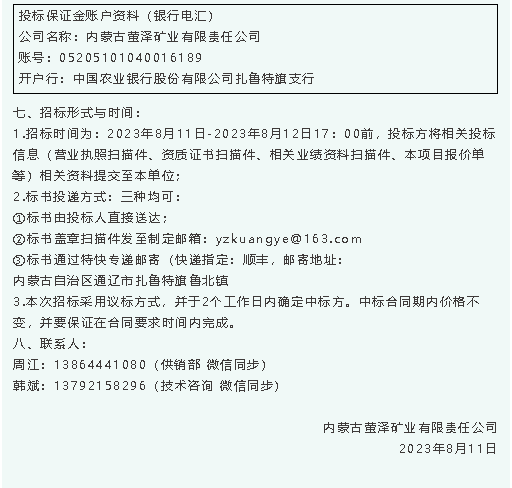 【招標(biāo)公告】螢澤礦業(yè)