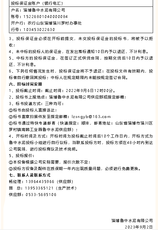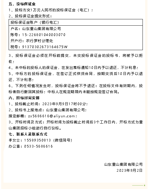 【招標(biāo)公告】重山集團(tuán)秋冬季工作服、魯中水泥風(fēng)機(jī)招標(biāo)