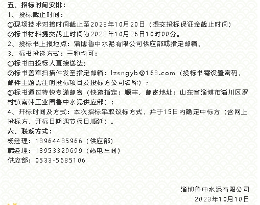 【招標公告】魯中水泥