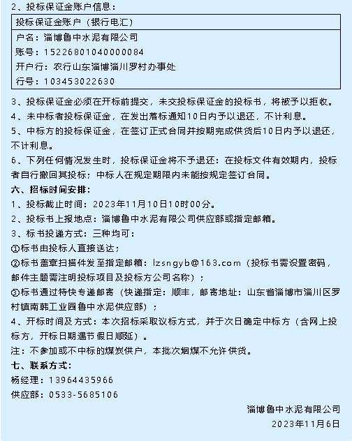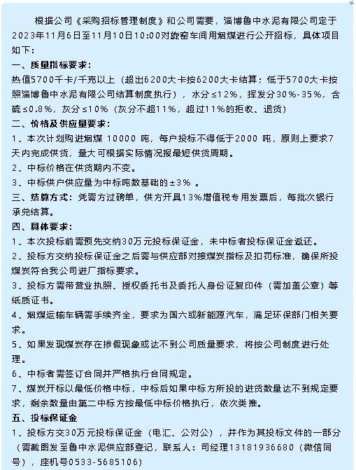 【招標公告】魯中水泥
