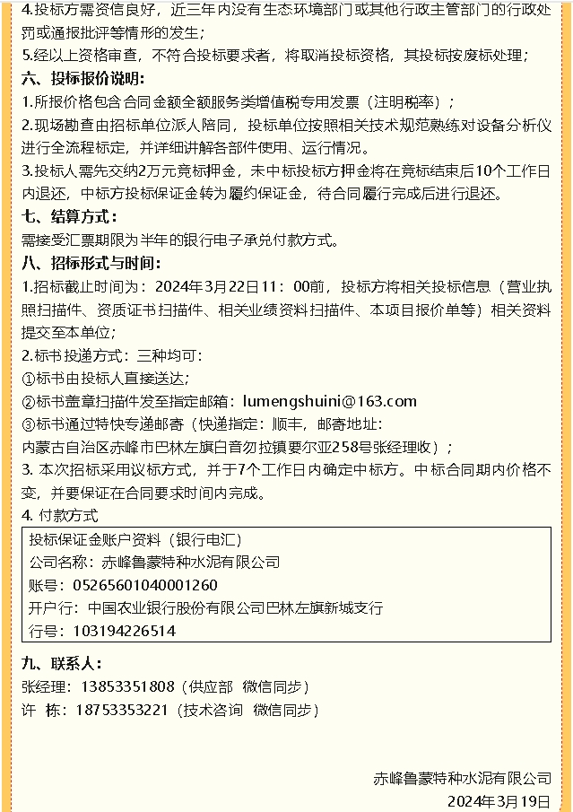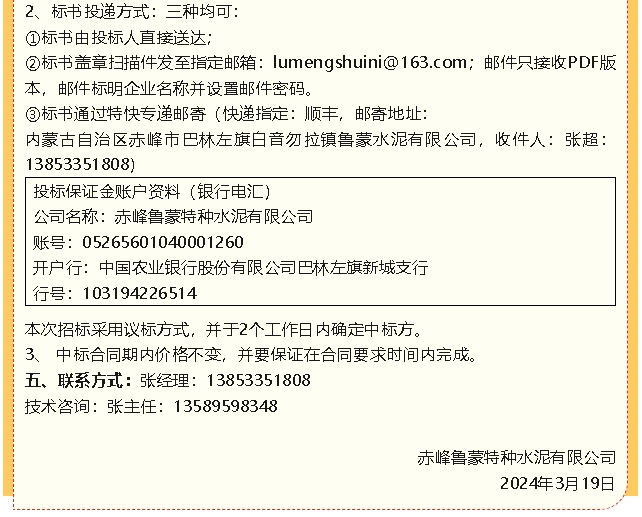 【招標(biāo)公告】魯蒙水泥