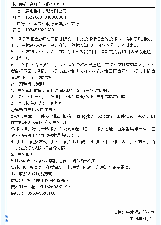 【招標公告】魯中水泥