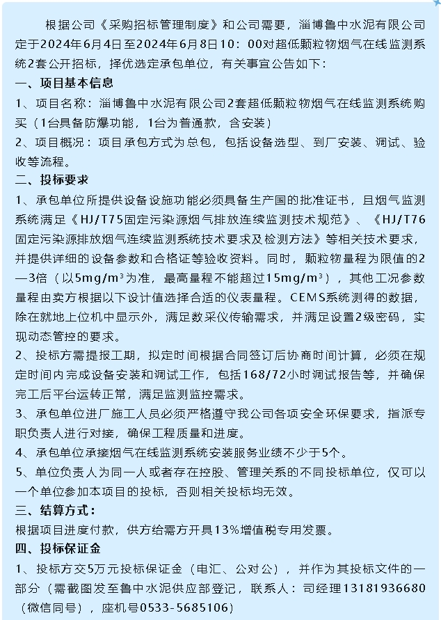 【招標(biāo)公告】魯中水泥