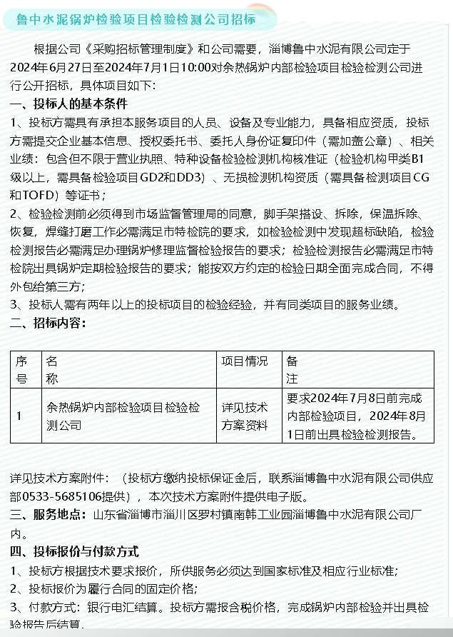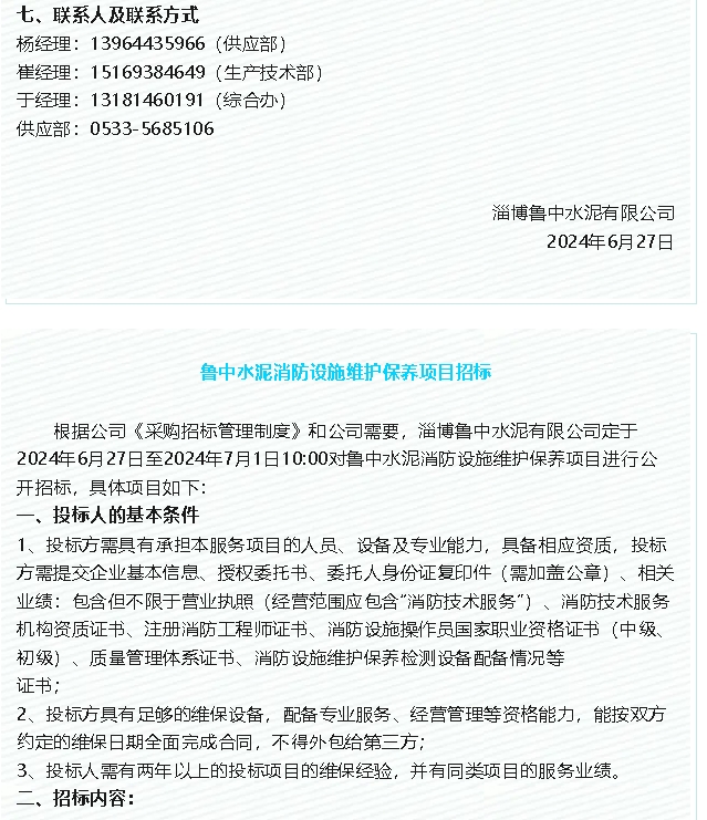 【招標(biāo)公告】魯中水泥、魯蒙水泥