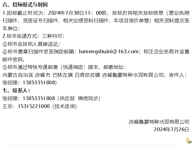 【招標公告】魯蒙水泥檢修項目、煙煤招標
