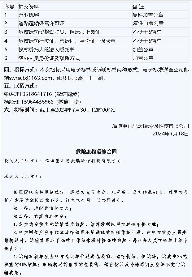 【招標(biāo)公告】魯中水泥、重山思沃瑞